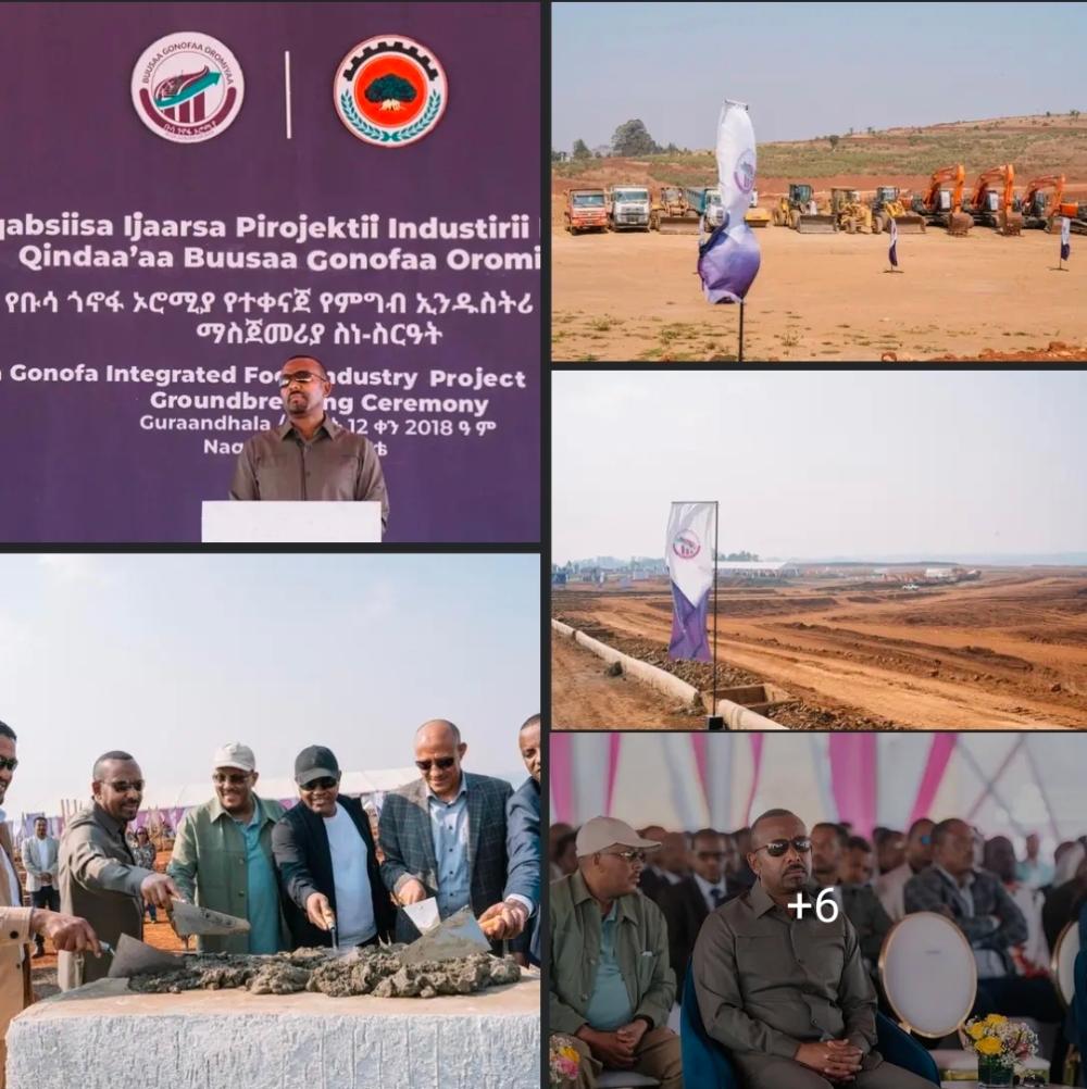ዛሬ ያስጀመርነው የቡሳ ጎኖፋ ኦሮሚያ የተቀናጀ የምግብ ኢንዱስትሪ ግንባታ የበቆሎ እና ማሽላ ዱቄት እንዲሁም 14 ተጓዳኝ የበቆሎ ውጤት ምርቶችን ለማምረት የታቀደ ነው። ፕሮጀክቱ ተጠናቆ ወደ ስራ ሲግባ በቀን 2000 ቶን በቆሎ እና 120 ቶን ማሽላ የማምረት አቅም ይኖረዋል። ከ6500 በላይ ለሚሆኑ ሠራተኞች ቋሚ እና ጊዜያዊ የሥራ እድል የሚፈጥር ሲሆን ለአካባቢው አርሶአደሮች፣ ለኅብረት ሥራ ማኅበራት እና የግል ዘርፍ አምራቾች የእሴት ሰንሰለትን በማገዝ ለአካባቢው አርሶአደሮች ሰፊ ገበያ ይፈጥራል፣ የአካባቢውን ኢኮኖሚ ያሳድጋል። ጠቅላይ ሚኒስትር ዐብይ አሕመድ (ዶ/ር)